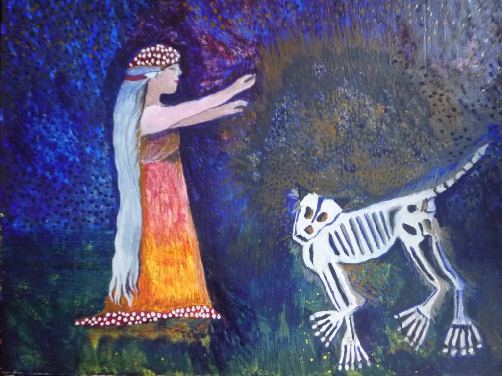 «La loba, la vieja, la Que Sabe, está dentro de nosotras. Florece en la más profunda psique del alma de las mujeres, la antigua y vital Mujer Salvaje. Ella describe su hogar como ese lugar en el tiempo donde el espíritu de las mujeres y el espíritu de los lobos hacen contacto -el lugar donde su mente y sus instintos se mezclan, donde la vida profunda de una mujer consolida su vida mundana. Es el punto donde el Yo y el Tú se besan, el lugar donde las mujeres corren con los lobos.”